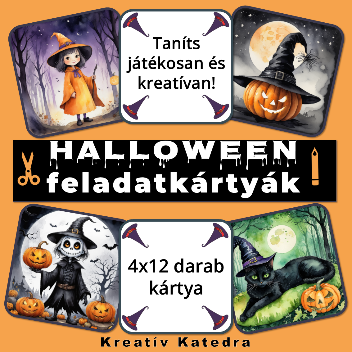 Halloween - Szellemes feladatkártyák pdf (4 darab A/4-es, nyomtatható, laminálható lap)