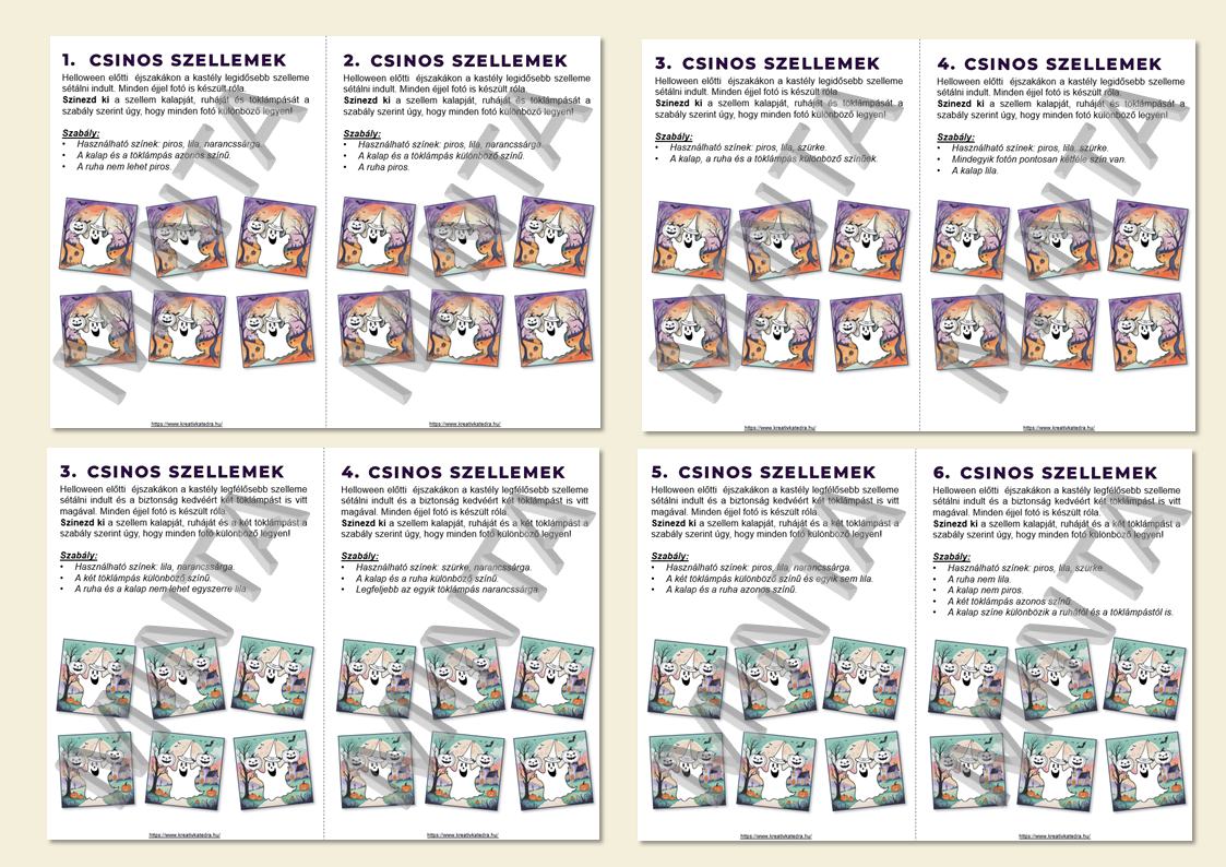 Játékos logika Halloween hangulatban a "Halloween - Csinos szellemek - 12" digitális rejtvényfüzettel.