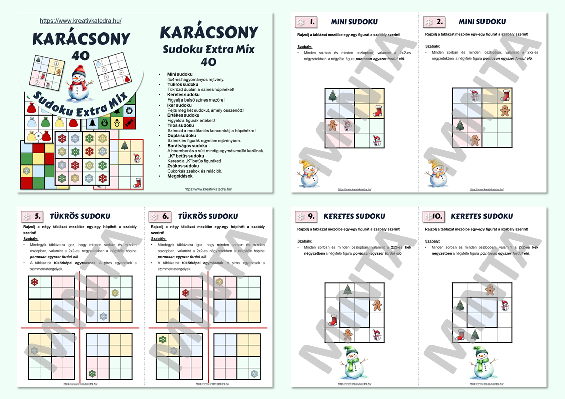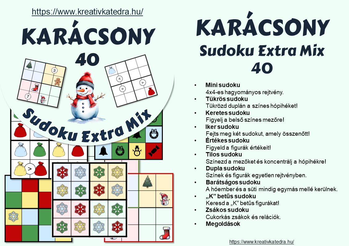 Különleges sudoku rejtvények karácsonyi hangulatban a "Karácsony - Sudoku Extra Mix - 40" digitális rejtvényfüzettel.