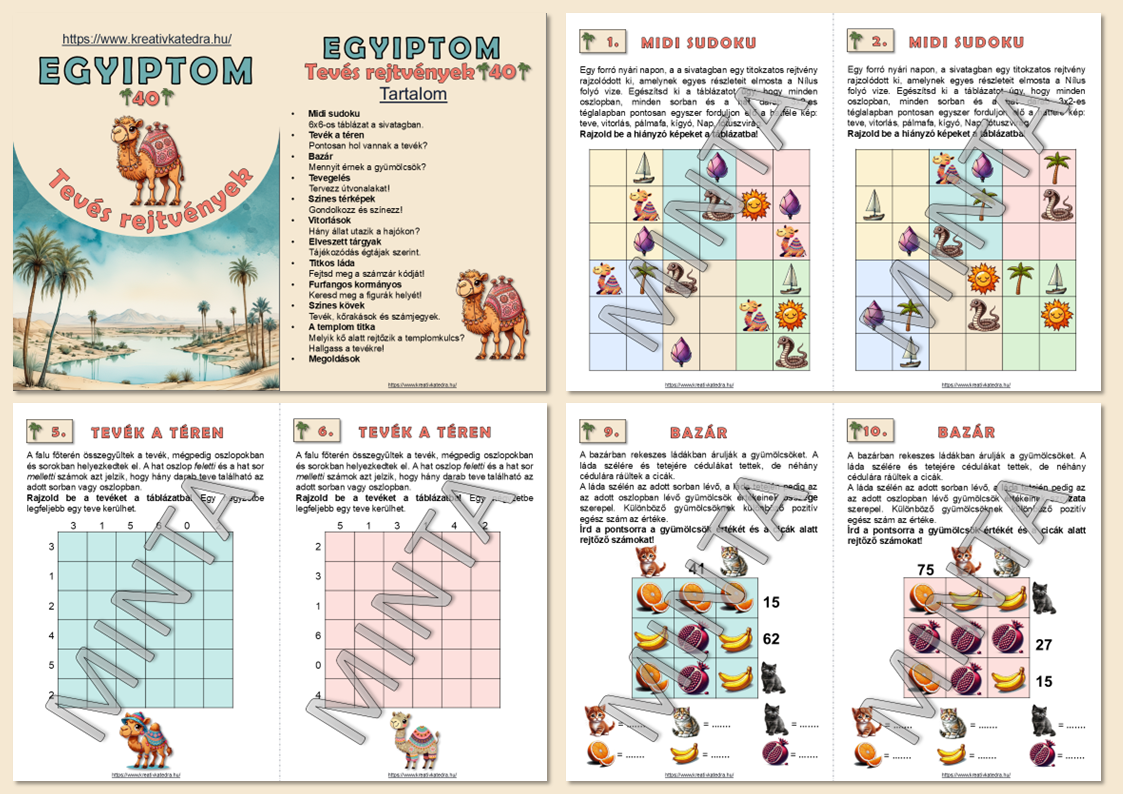 Játékos matematika egyiptomi hangulatban a "Tevés rejtvények - 40" digitális rejtvényfüzettel.