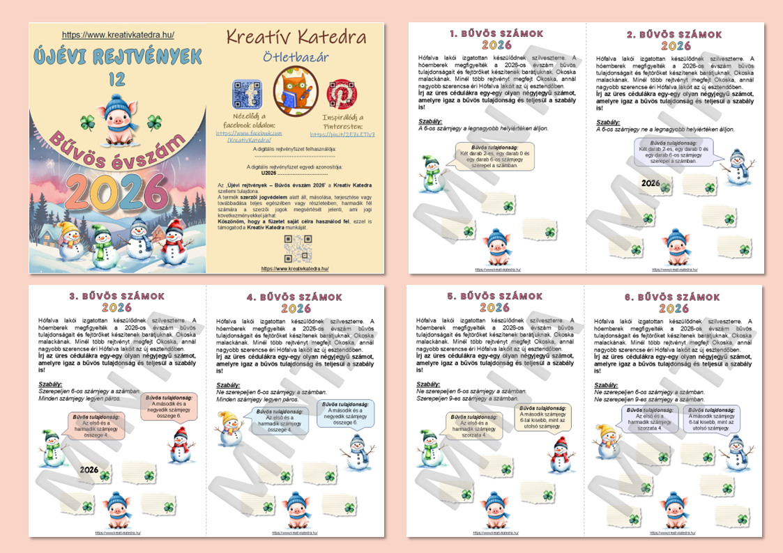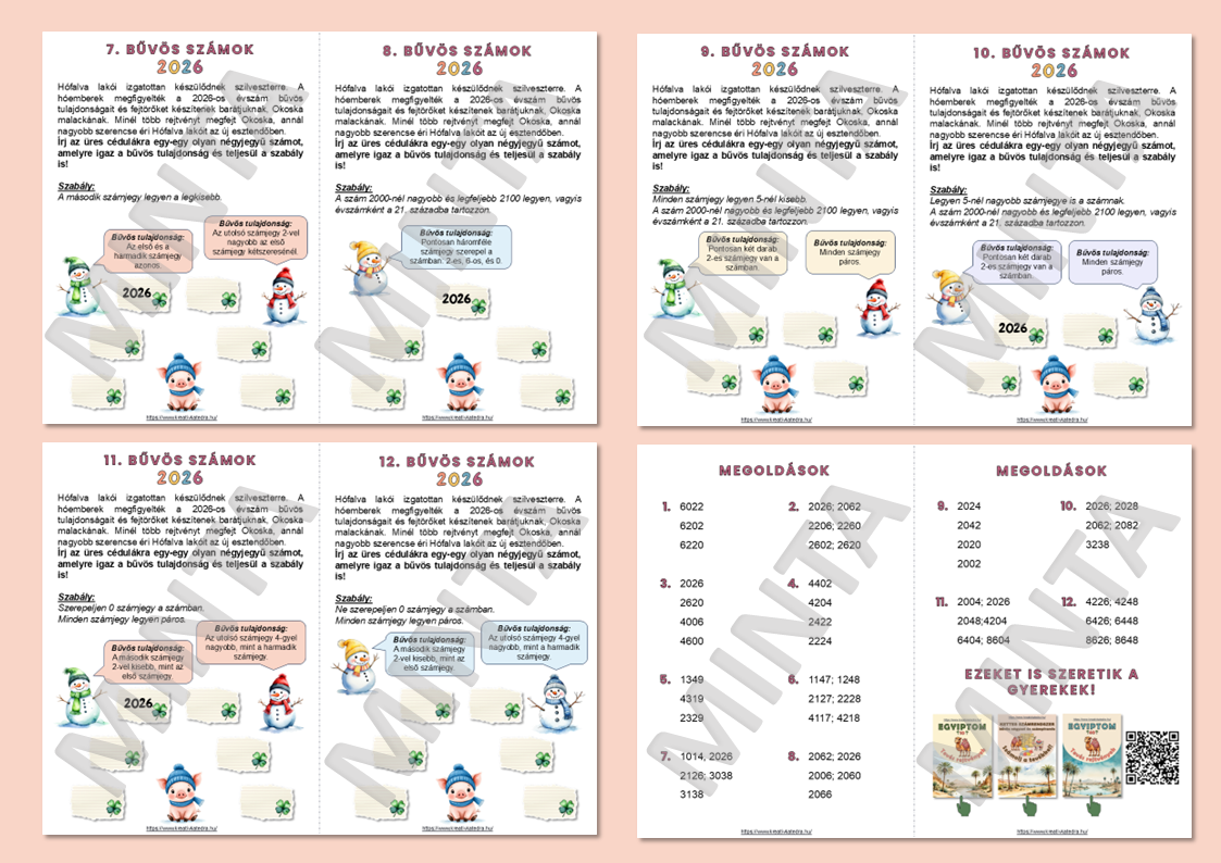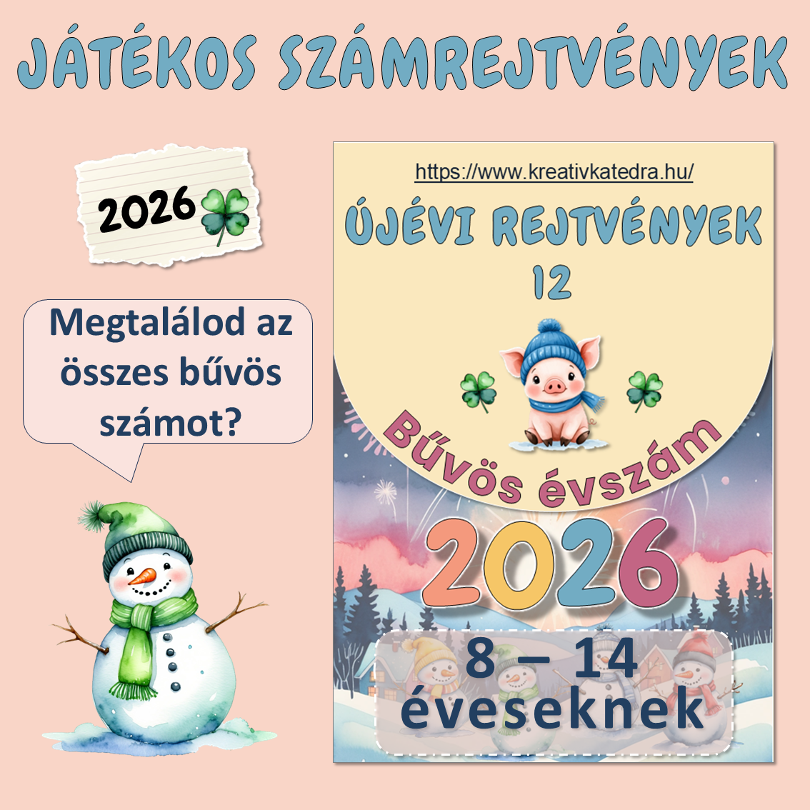 Játékos matematika újévi hangulatban az "Újévi rejtvények - Bűvös évszám 2026 - 12" digitális rejtvényfüzettel.